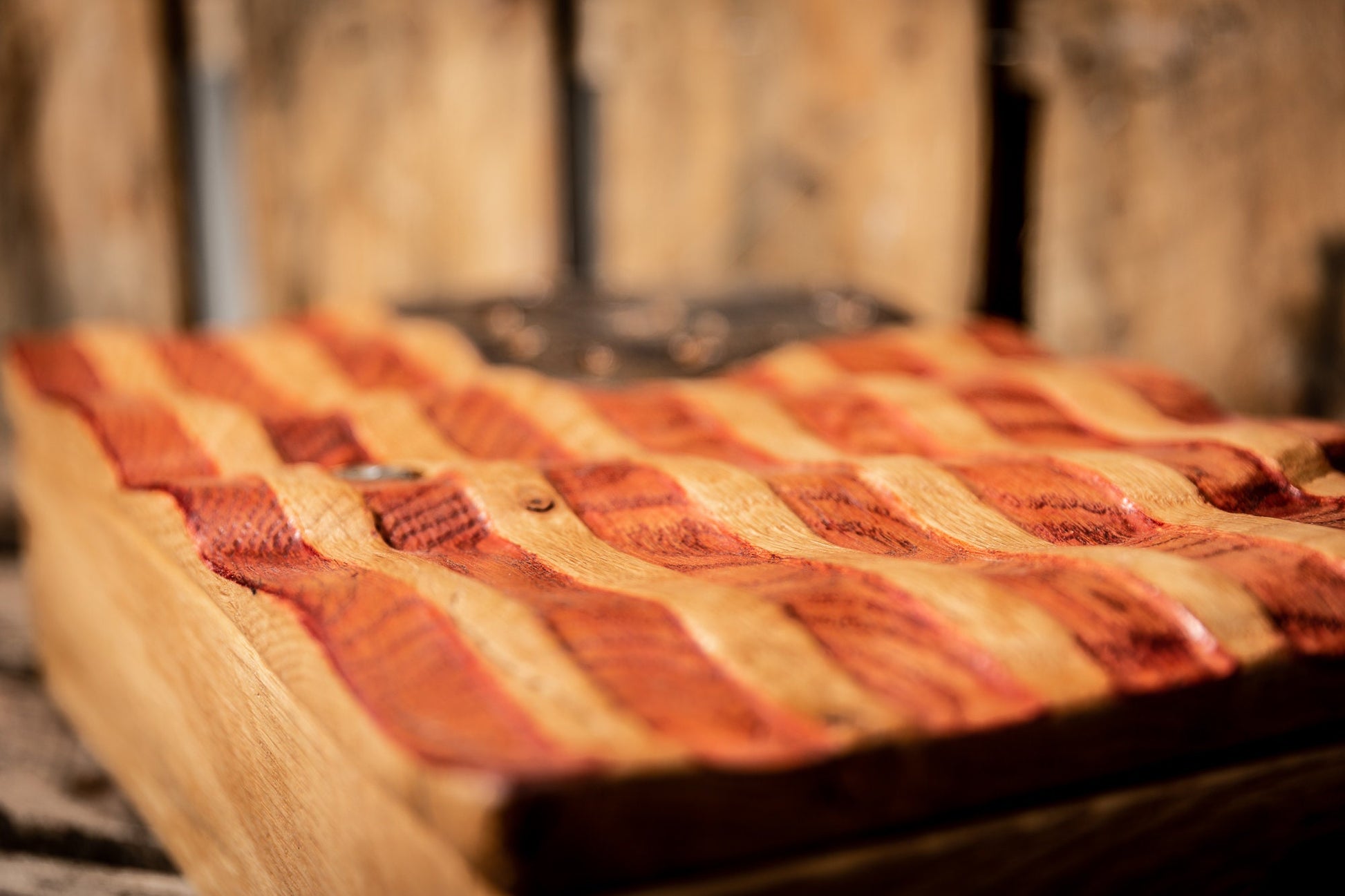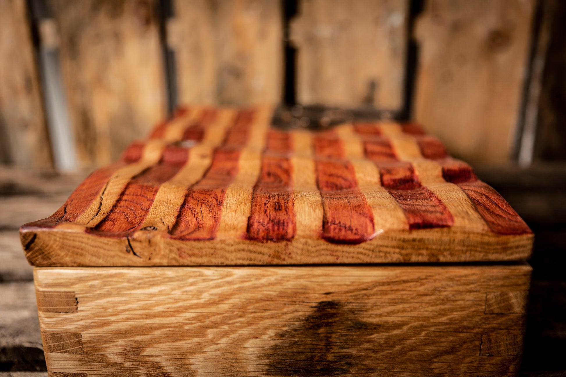 You are looking at a gorgeous rustic white oak wavy flag gun concealment case! The lid of this amazing pistol display case features a carved wavy Betsy Ross flag with with 1776 in the center of the 13 stars. This case is made of beautiful .75" thick rustic white oak. Our boxes feature finger jointed corners and measure 15.5"x10"x4" outside and 14"x8.5"x2.5" inside. We hand sand this case, stain it then coat it in several coats of shellac. High quality hidden hinges are not visible from outside the case. Included is a lock with 2 keys. An optional piece of un-cut 1.5" thick gun case foam that can be cut to accommodate the shape of your firearms, ammo etc is available for an additional $10. This is a very high quality box and is built to last a lifetime ! Could also be used as a locking keepsake box. This is defiantly the highest quality box of its kind on Etsy. I try to keep at least one box ready at all times so that I can ship the same day orders are placed. If I do not have one ready to ship at the time of order it will be constructed and ready to ship within 3 days. I ship via UPS fully insured. As soon as item is shipped I will contact you with a tracking number. Wood grains and wood imperfections will vary from box to box and no 2 boxes are 100% alike . Please feel free to contact us with any questions at MrGoodWoodCNC@gmail.com