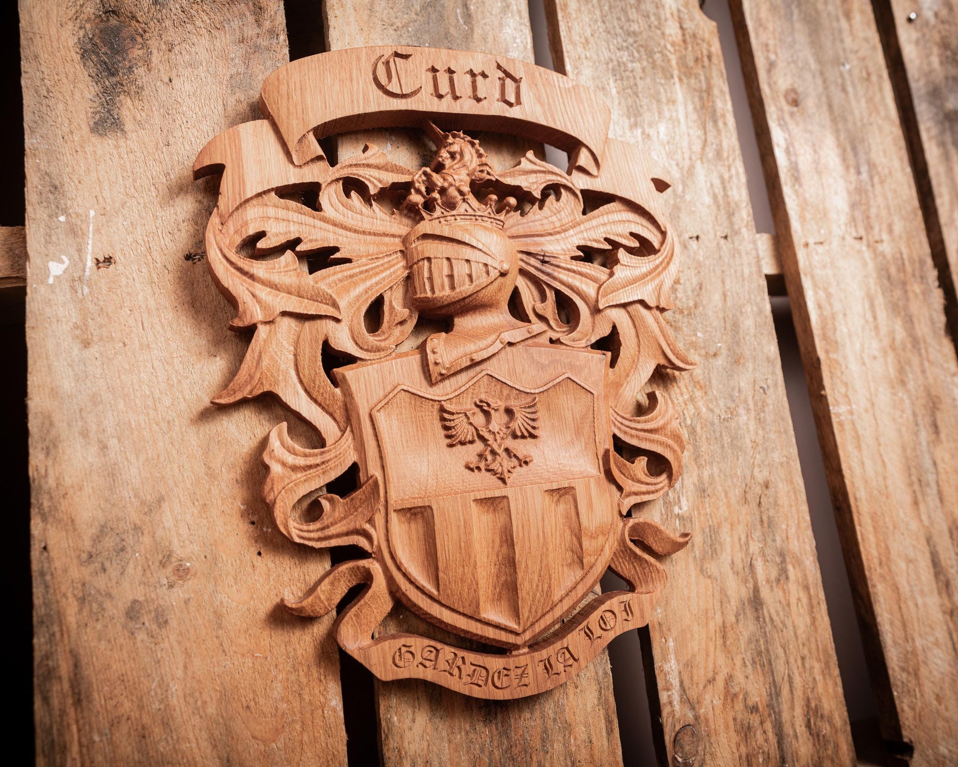 Custom Family Crest - Coat of Arms Wood Carving - Unique Handmade Gift