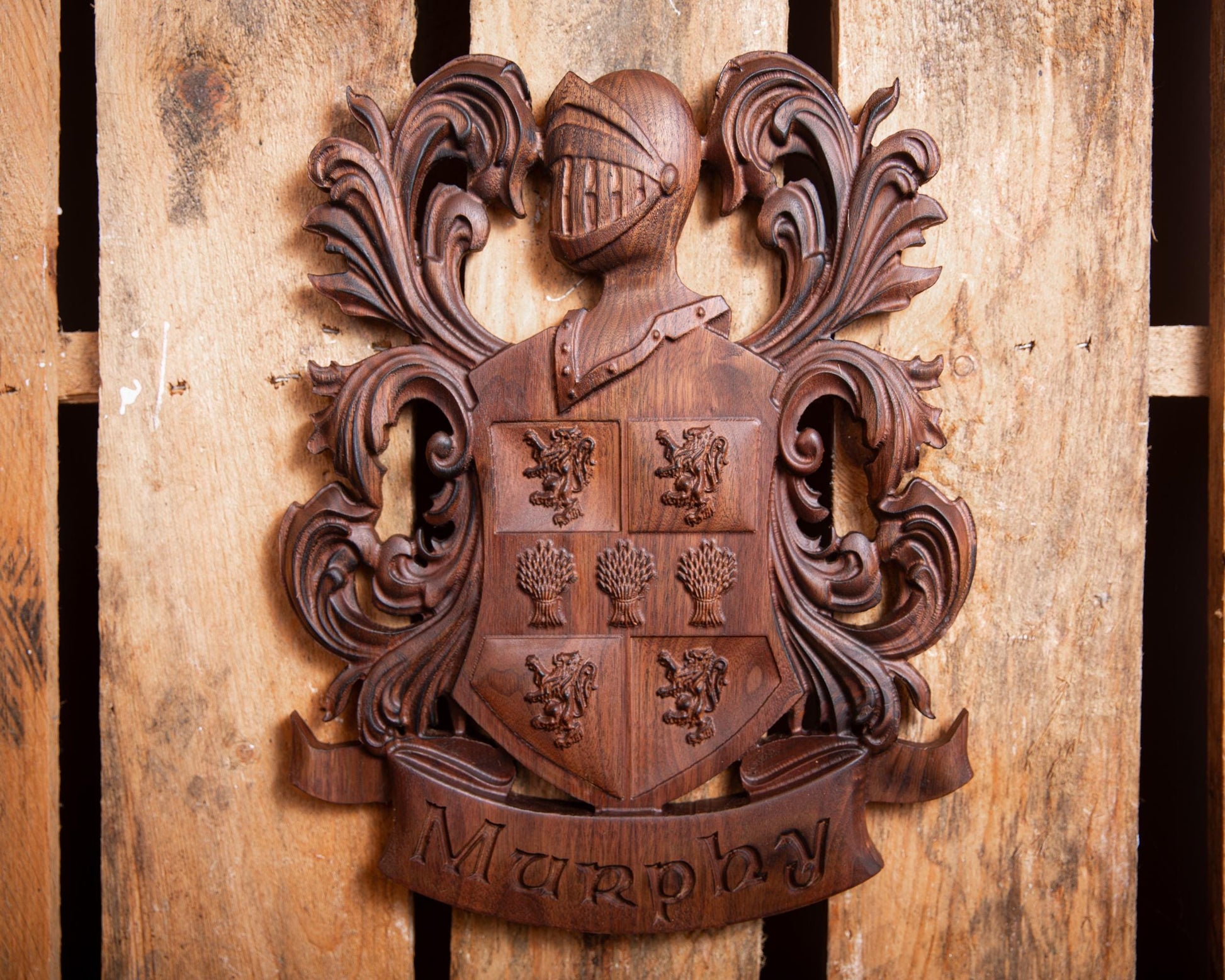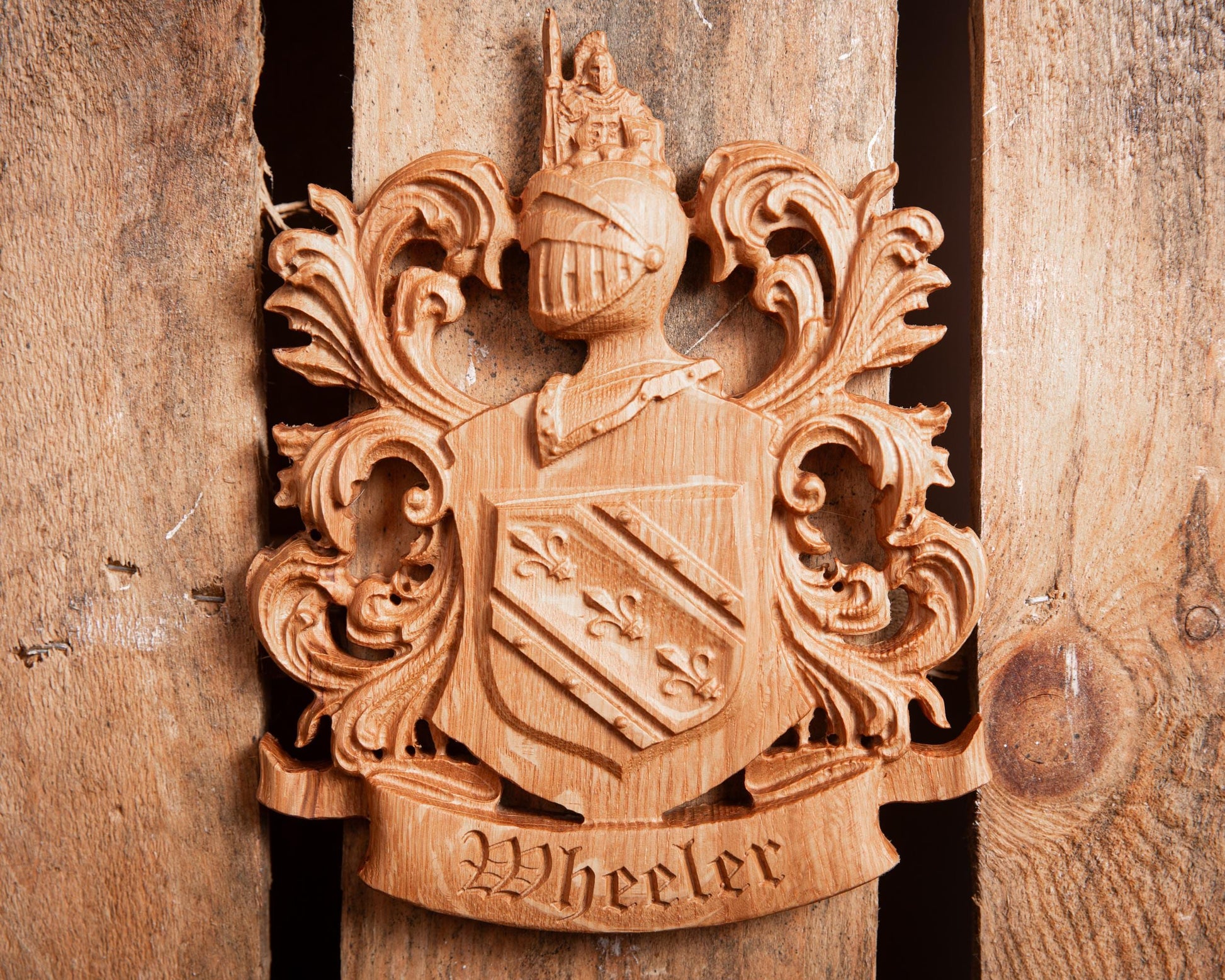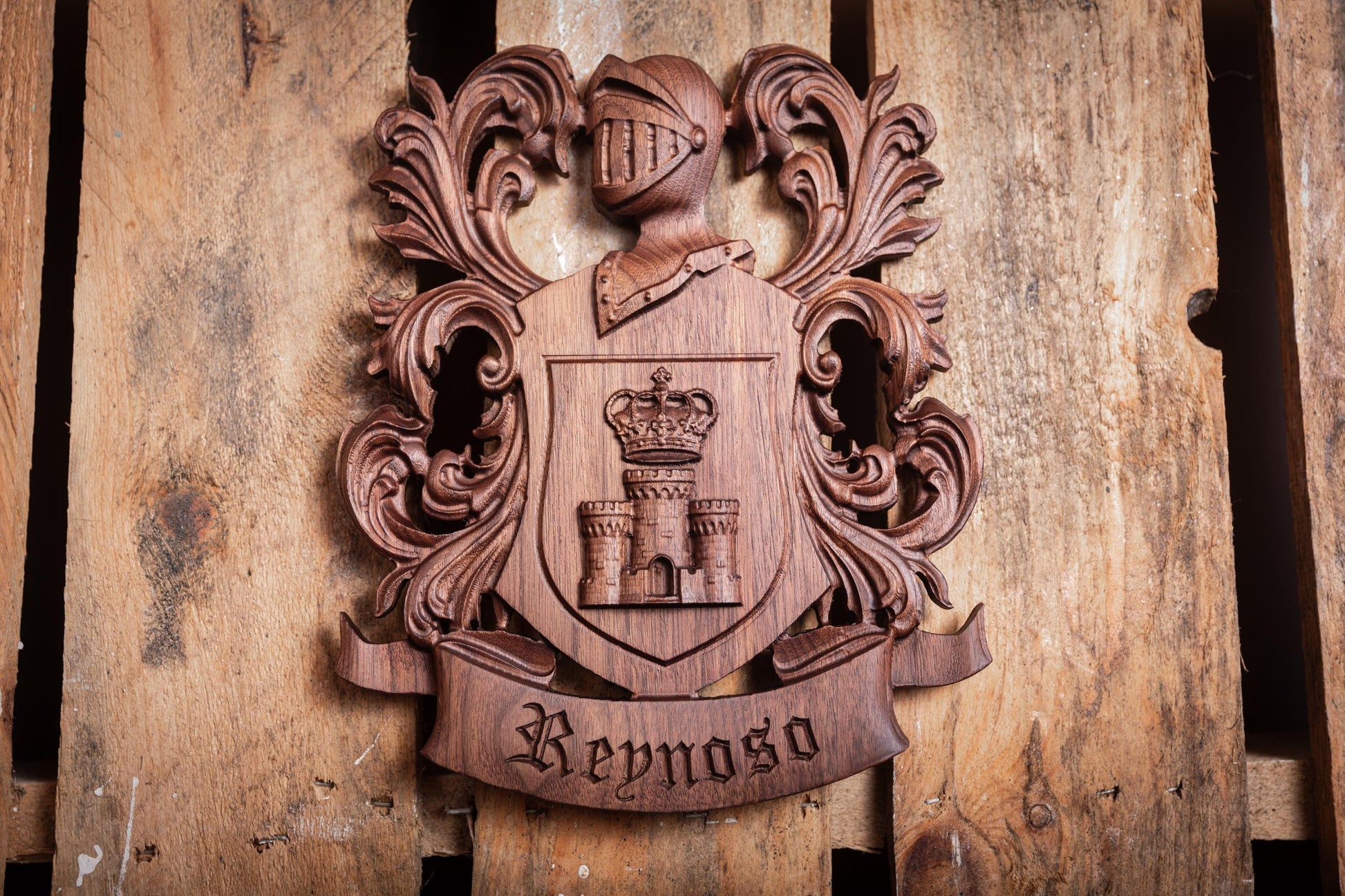 This beautiful, personalized family crest makes the perfect wedding or anniversary gift that will be cherished for a lifetime. Not sure if there is a crest associated with a particular family name? Let us help you find out. Want to create an original design that is all your own? We can help you do that to. Each order is designed in our 3d modeling software. Once design is complete, we will send you a preview via Etsy message to review. After receiving approval on the design, your order will be precision carved on one of our cnc machines. We then hand sand and apply a generous coat of all-natural beeswax to seal your family crest prior to shipping. Our family crest is offered in 9", 12", 15" and 24" as well as 3 different types of wood: white oak, walnut and cherry.