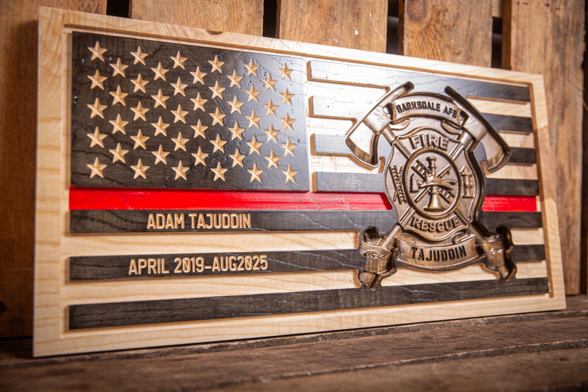 Personalized Thin Red Line Flag, Firefighter Retirement Gift, Unique Handmade Gift