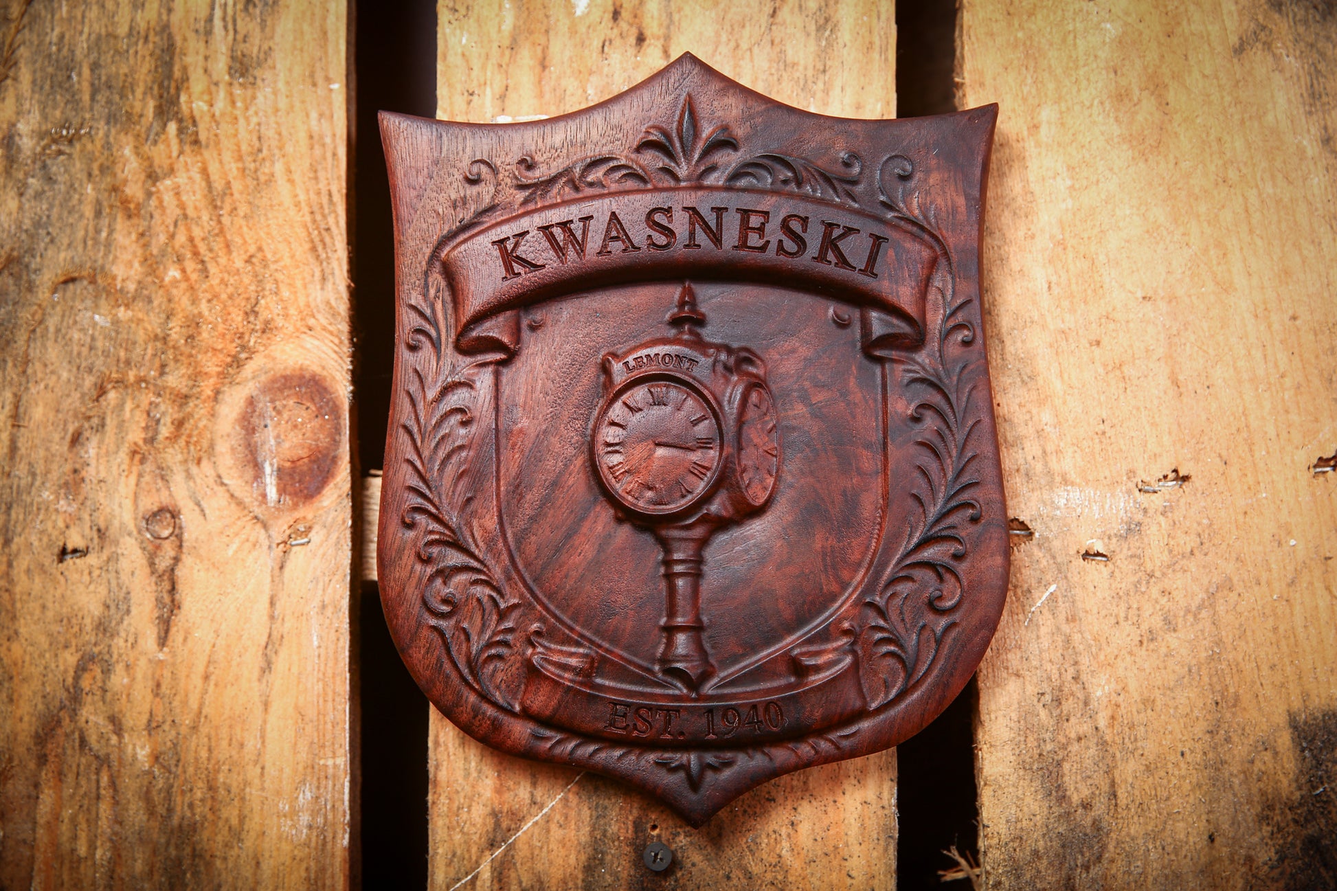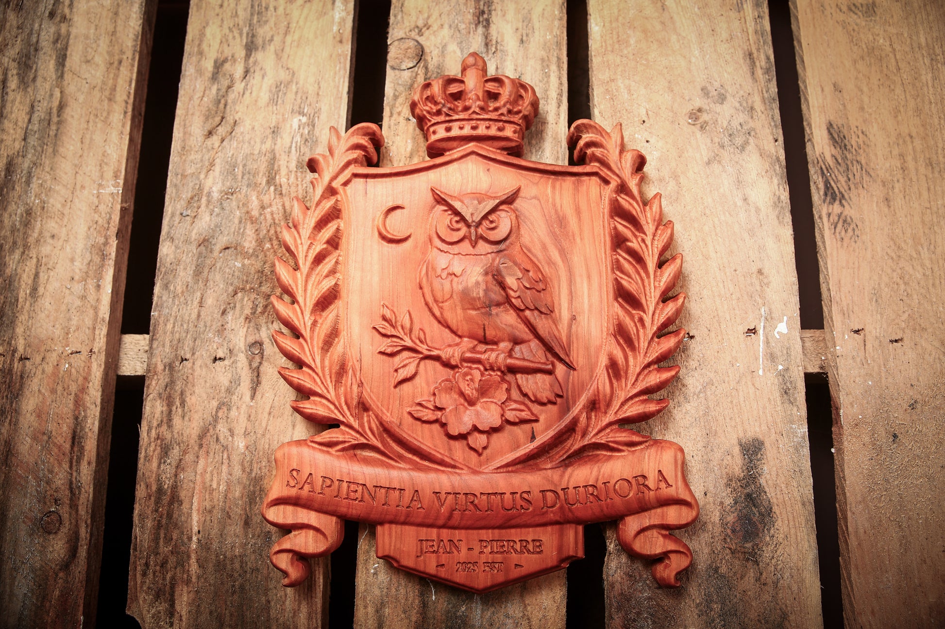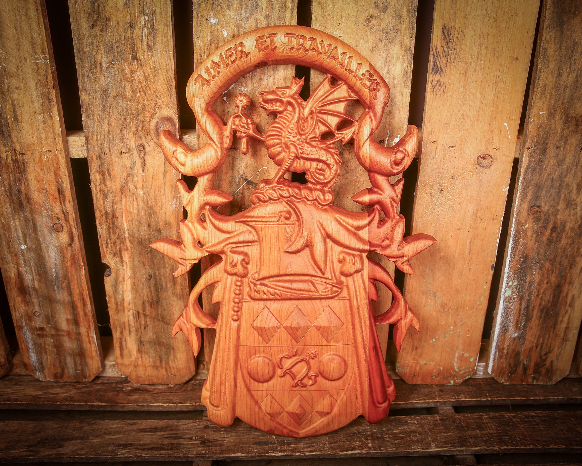 Bring your lineage to life with a one-of-a-kind Coat of Arms plaque carved from solid hardwood.