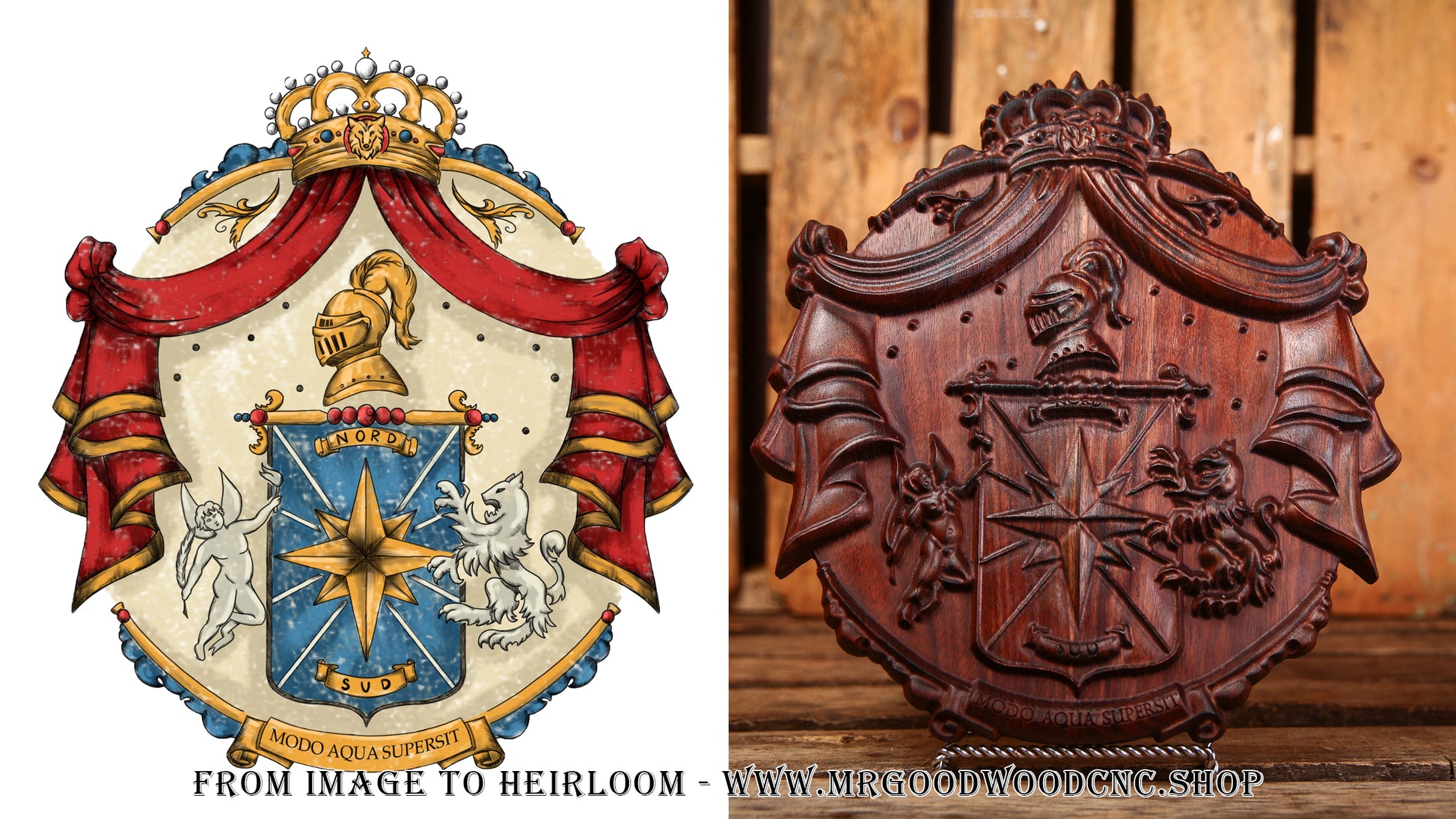 Upload your family crest / coat of arms, or reference image on the listing page.
