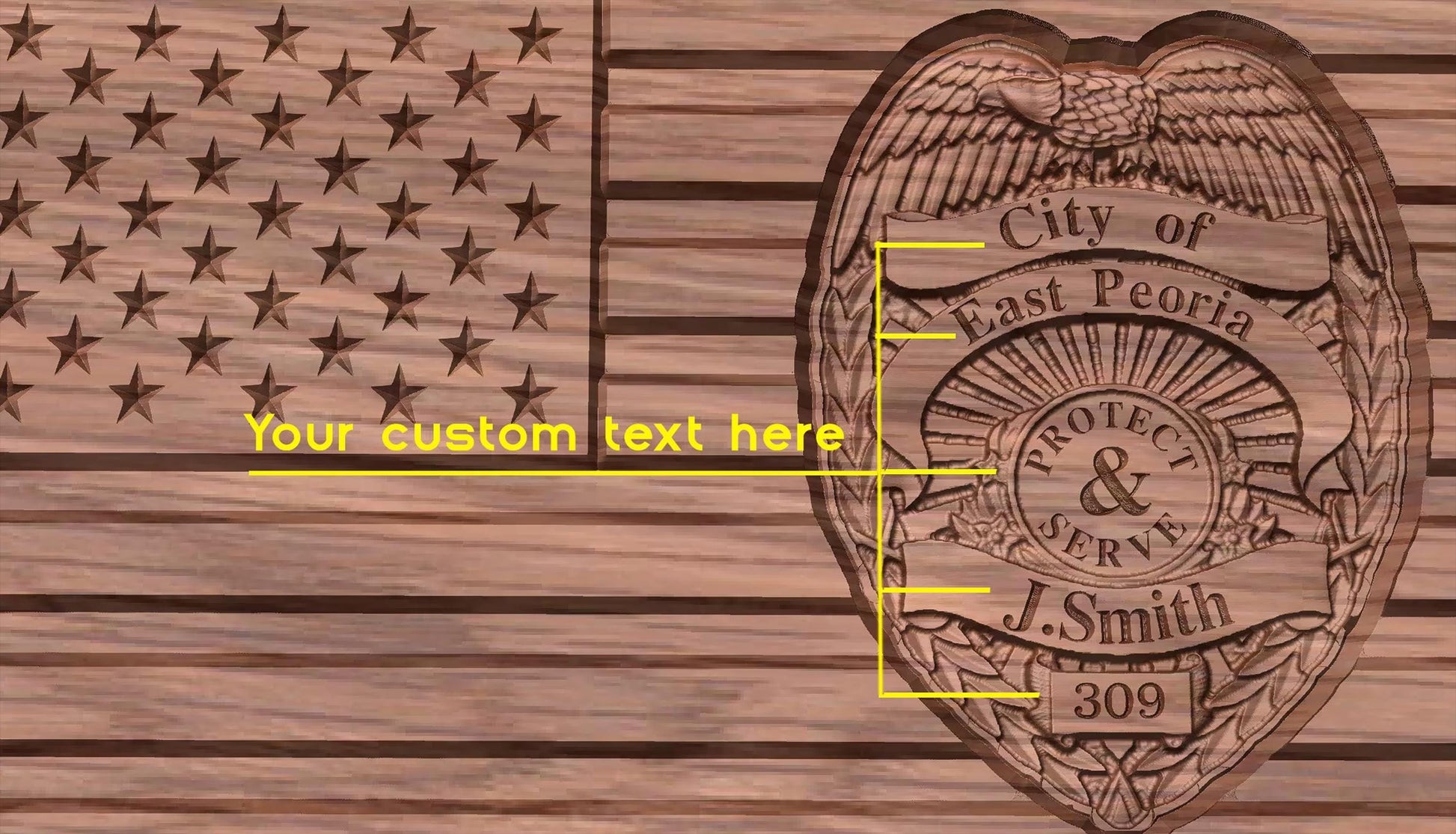 Please be sure to enter your personalized text like officer's name, badge# and department city to be carved.